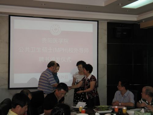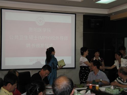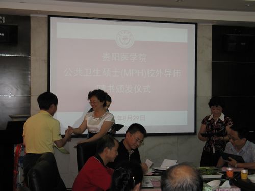 为保证公司首届MPH公司产品相关工作的顺利开展,贵阳医学院研究生学院与必赢76net线路于8月29日下午在必赢76net线路会议室召开校内外联合培养单位及校内外导师MPH教学相关工作座谈会。研究生学院杨勤经理及相关部门负责人,公司党政领导,联合培养单位(贵州省卫生厅、贵州省疾病预防控制中心、贵州省卫生厅卫生监督局、贵阳市疾病预防控制中心)相关负责人及校内外MPH导师,必赢76net线路相关科室负责人等参会。会议由必赢76net线路洪峰副经理主持。首先,研究生学院杨勤经理致欢迎词,对MPH校外联合培养单位的大力支持表示衷心的感谢。之后由研究生学院杨勤经理、必赢76net线路张爱华经理向校外MPH导师颁发导师聘任证书。随后,必赢76net线路张爱华经理介绍MPH教育情况(包括国际公共卫生教育情况、国外MPH培养特点、我国MPH培养现状等内容),必赢76net线路洪峰副经理介绍公司MPH培养方案,必赢76net线路教学科研管理科何江科长介绍公司MPH培养流程和相关培养细则。最后,校外联合培养单位相关负责人和校外MPH导师与公司参会领导和教师就相关问题进行了详细的讨论和交流。