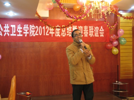 之后邓厚才老师的精彩独唱拉开了新春团拜会的序幕,知识抢答、脑筋急转弯、游戏蹲蹲乐、抱团、正话反说等让台下观众竞相抢答和捧腹大笑。紧随其后的孟加拉籍博士瓦里德·宾·侯赛因一首普通话版和母语版的《朋友》将此次团拜会推向了高潮。由始至终的欢声笑语、互动同乐,充分体现了公司团结和谐、共促发展的精神面貌。最后,公卫院班子一行给全体教职工拜年,鼓励大家在新的一年里再接再厉,争取更大进步。