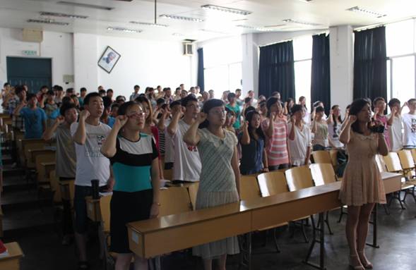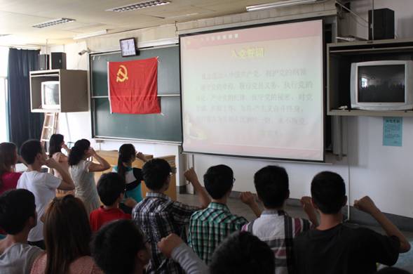 为隆重庆祝建党92周年,重温党的光辉历史,继承和发扬党的光荣传统和优良作风,明确党员的责任和义务,进一步增强党性意识,增强党员队伍的凝聚力和战斗力,6月28日,必赢76net线路在5101教室举行新党员入党宣誓、老党员重温入党誓词活动,党委副书记杨光红、辅导员王得颖和周洪媛参加了活动。活动由员工第二党支部书记聂玉洁主持。
