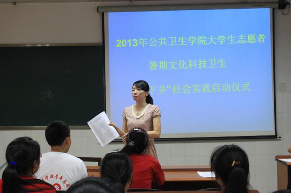 在此次启动仪式上,公卫公司党委书记张红霞为暑期社会实践作了动员讲话,她指出,社会实践活动是引导老员工走出校门、深入社会、了解民情、亲近自然的重要方式,也是老员工向群众学习,自觉提高综合素质的重要途径,她希望广大同学要积极参与,虚心学习,在实践中探索,在思考中总结,在服务中收获,在实践中树立正确的人生观、价值观,全面提高自身素质。随后,分团委周洪媛老师传达了校团委关于此次社会实践的主题、主要内容及要求。