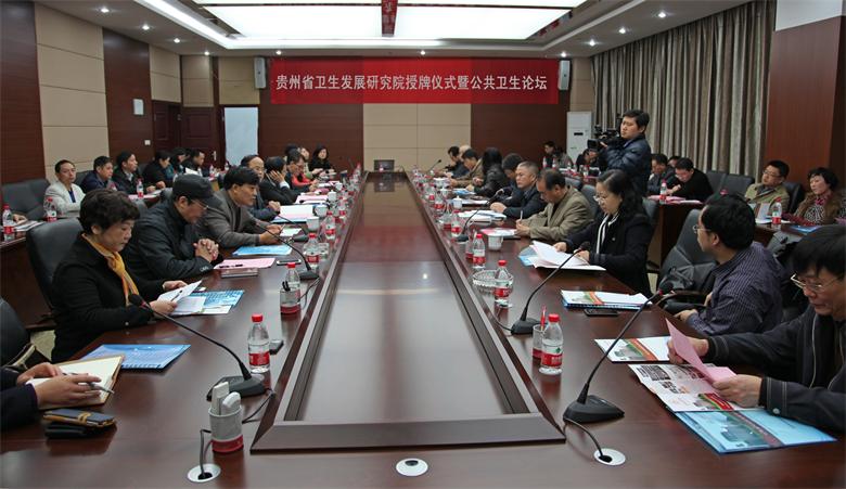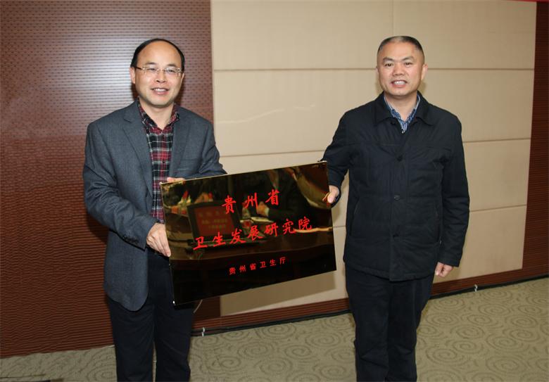 卫生厅副厅长朱征明宣读了《贵州省卫生厅关于同意成立贵州省卫生发展研究院的函》(黔卫函 〔2013〕204号),并为贵阳医学院授予“贵州省卫生发展研究院”牌。