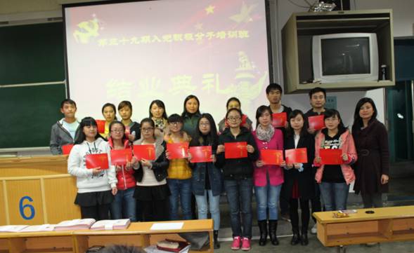 结业典礼在庄严的国歌声中拉开帷幕,首先,杨光红同志作了总结。此次分党校入党积极分子培训班共分为两个班,校本部和花溪校区,校本部这个班由医药卫生管理学院、人文学院、护理学院、法医系、口腔医学院、医员工物工程系和公卫学院共7个院系144名同学组成,经过理论学习、分组讨论、结业考试几个环节,除有2名同学缺考外,其余142名同学顺利结业。杨书记希望广大同学能继续保持学习的精神,用党员的标准严格要求自己,起到模范带头作用,用实际行动,争取早日加入到党组织中来。