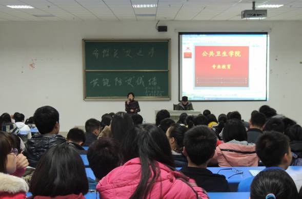 副经理洪峰教授作了题为《专业发展现状与就业》的讲座。他从阐述“公共卫生”、“预防医学”、“卫生检验与检疫”、“食品卫生与营养学”的概念开始,介绍了各专业的学科背景、培养目标、课程设置和就业前景;给同学们系统的分析了当前我国公共卫生与预防医学学科面临的挑战和机遇,以及今后就业中需要具备的综合能力,鼓励同学们勤学好问,学好专业、利用老员工活全面锻炼自己的能力。