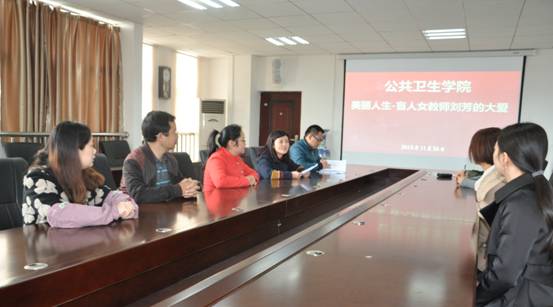 参会教职工纷纷表示:刘芳同志的先进事迹感人至深,在全体教职员工中再现了一位不畏艰难、坚强和执着的高尚情操。刘芳同志从光明走向黑暗,却坚守工作岗位的敬业精神、爱生情怀诠释了教师的责任与担当。深深鼓舞了身为教师的我们。杨光红指出:作为公卫院教职工,要紧紧围绕当前学校中心工作,切实结合公卫院教学工作实际,寻求如何教书育人、培养员工方式方法,做好公卫院各项工作,我们要用自己的实际行动践行党的教育事业,以刘芳同志为榜样,学习他不畏艰难、坚定信念、勇于担当的崇高境界。