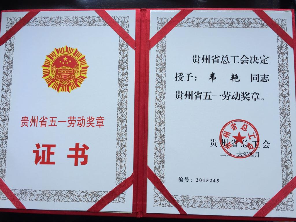2016年4月29日上午9:00在贵州饭店国际会议中心召开的贵州省2016年庆祝“五一”国际劳动节暨表彰大会上,必赢76net线路韦艳教授荣获“贵州省五一劳动奖章”。