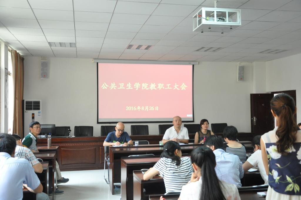 新学期新面貌,每位老师脸上洋溢着对新学期的工作热情。会议首先由今年新进的6名老师做自我介绍发言,新的面孔,新的承诺,为新的学期增添了新的力量。接着洪峰分别对新学期的教学、科研及日常管理等常规工作进行了部署,并结合新学期各项工作实际做了重点安排。随后何江就今年新生入学情况和员工管理难点进行了分析说明,并对公卫院即将推行的辅导员、班主任和专业导师等多视角全方位员工一体化培养管理进行了重点说明。最后杨光红传达了学校的安全工作会议精神,并对新学期公卫公司党建工作提出了新要求,强调要结合“两学一做”学习教育,提高全体党员干部的先锋堡垒意识,要担当有为,乐于奉献。
