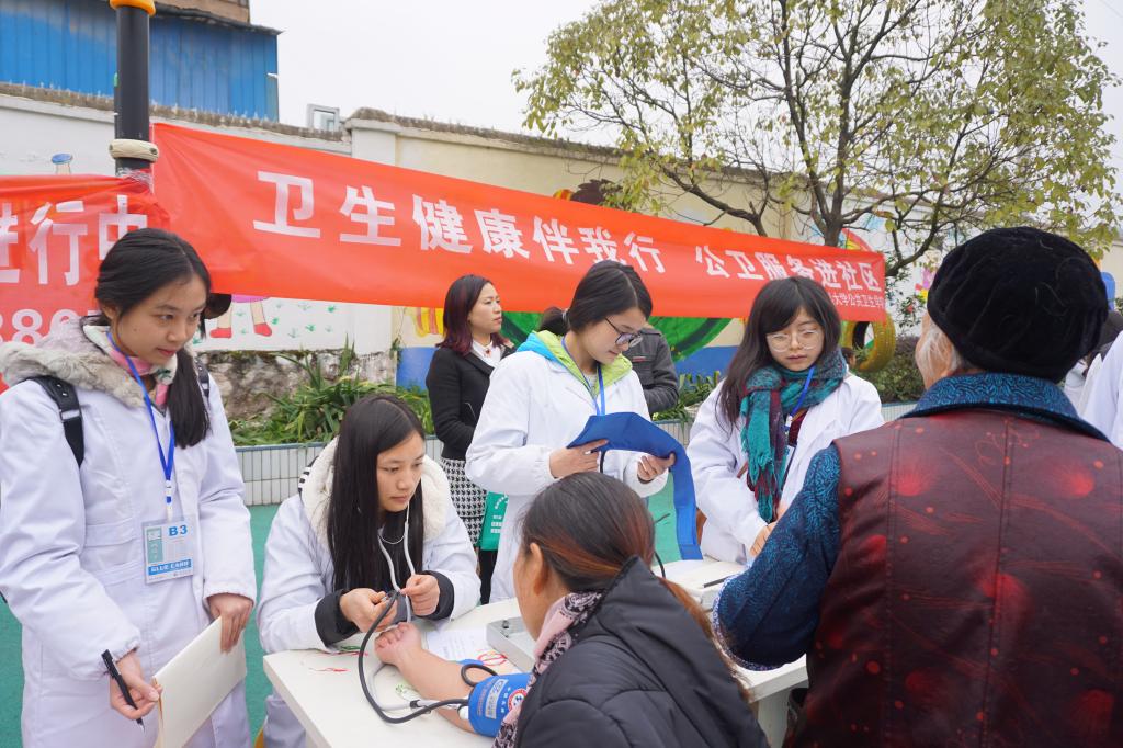 为落实公共卫生社会实践与现场教学相结合的原则,培养和提高公共卫生专业研究生从事公共卫生实践的工作能力,在“贵州省公共卫生硕士专业学位工作站”和必赢76net线路的大力支持下,由必赢76net线路2015、2016级公共卫生硕士(MPH)研究生组成的社会实践队在必赢76net线路副书记何江的带领下于12月3日(星期六)走进花溪区小孟社区王武村,开展了慢性病防治、营养与健康、传染病防控等方面的健康宣传活动。同时在当地社区卫生服务中心的协助下,为村民进行了血压血糖的测量,并免费发放了一些冬季常用药品。