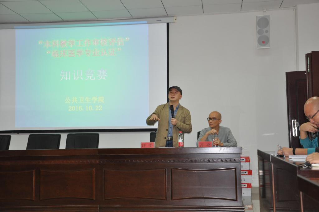 10月22日上午,必赢76net线路在博雅楼二楼学术报告厅开展必赢76net线路“本科教学工作审核评估”“临床医学专业认证”知识竞赛活动,必赢76net线路经理洪峰、党委副书记何江,各科室参赛选手、公卫院各年级本科生和研究生员工干部,共计70余人参加了活动。