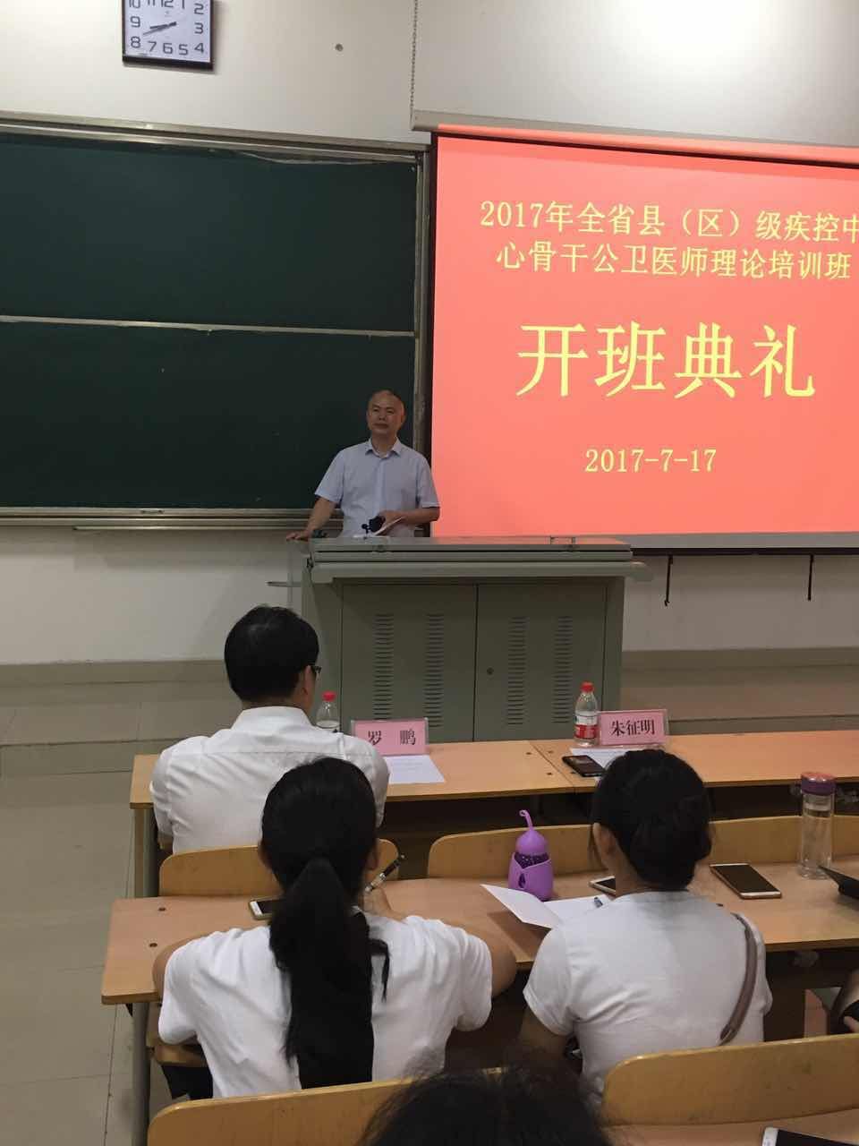7月17日上午8点30分,由贵州省卫生与计划生育委员会主办,必赢76net线路承办的“贵州省县(区)级疾控中心骨干公卫医师培训班”开班典礼在北校区科技大楼4101教室举行,来自全省各县(区)级疾控中心的骨干公卫医师160余人参加了培训。贵州省卫生计生委副主任朱征明、必赢76net线路副董事长罗鹏、省卫生计生委疾控处副处长潘忠伦、必赢76net线路教务处处长温小军、必赢76net线路公司党委书记杨光红、必赢76net线路经理洪峰及培训班教师代表出席了开班典礼。