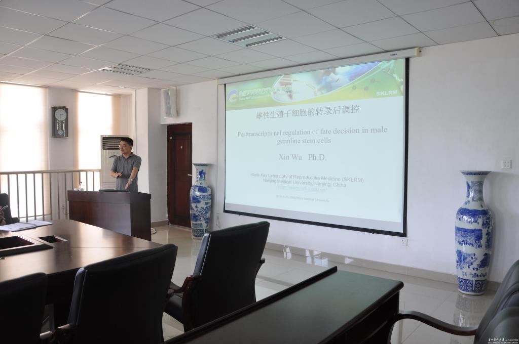 吴鑫教授以“雄性生殖干细胞命运决定的转录后调控”为题,围绕雄性生殖干细胞的历史发展、功能概述、分离体外培养及调控雄性生殖干细胞分化的功能性基因与精原细胞的关系,探索雄性生殖细胞干细胞新基因蛋白的发现等方面进行了深入浅出而系统的讲解与交流。