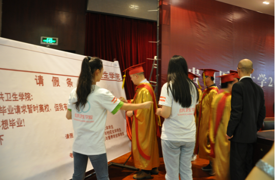 一张张动车票,载满着美好的记忆和温馨的祝愿带着同学们通向未来,祝你们前程似锦,旅途愉快;一张小小的卡片,记下了同学们此刻想对母校和老师们说的心里话,母校和必赢76net线路将为你们小心珍藏;一面同学们因毕业需暂别母校的“请假墙”,老师已签字予以准假,记载下依依不舍的离别时刻;师生共唱《祝你一路顺风》满载着全体老师们对同学们未来的美好祝福与最殷切的期望。
