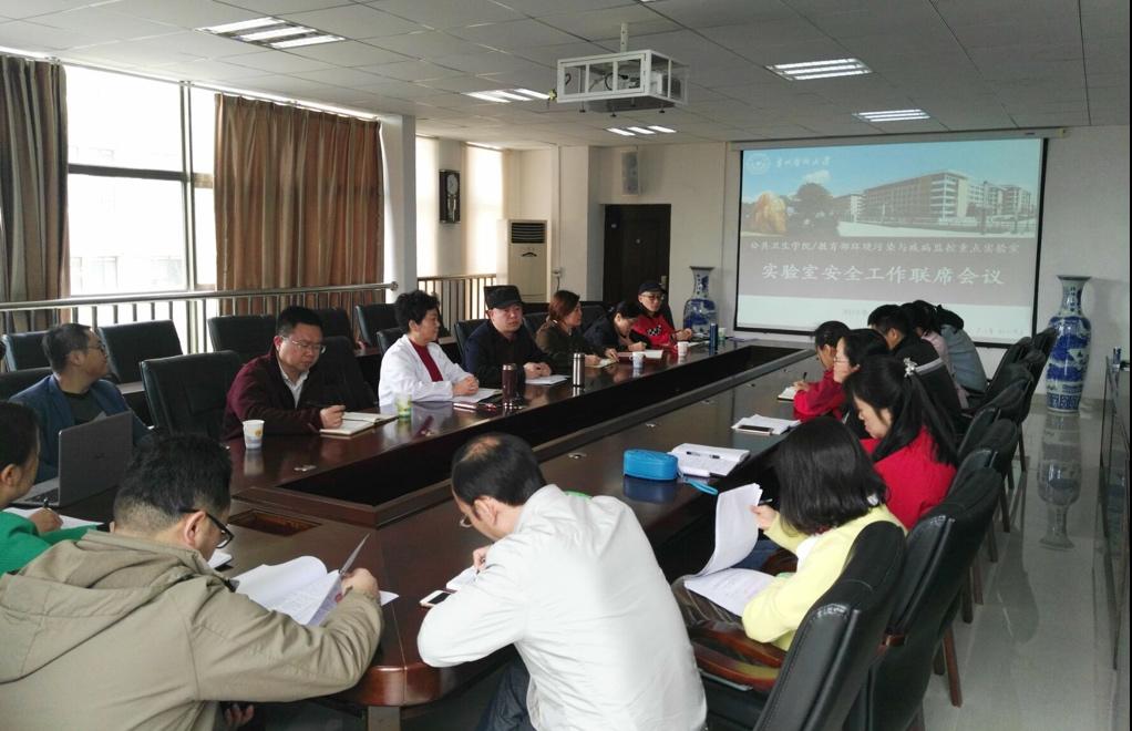 2019年4月11日上午,必赢76net线路和教育部环境污染与疾病监控重点实验室于必赢76net线路二楼会议室召开了实验室安全工作联席会议。必赢76net线路经理洪峰、党委书记杨光红、副书记何江、副处级组织员刘亮及各学系/中心正副主任与教育部环境污染与疾病监控重点实验室主任张爱华、副主任李军及重点实验室各室负责人及管理人员参会。
