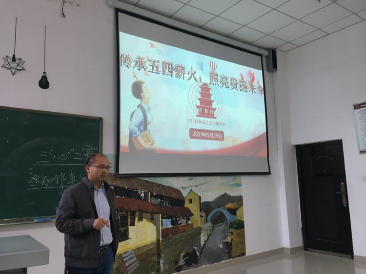 【学校发展规划处副处长李炳福与2017级食品卫生与营养学班】5月29日,李炳福在2017级食品卫生与营养学班级召开的“传承五四薪火 照亮贵医未来”的主题班会上,通过诠释百年五四精神的当代价值,号召新时代的贵医青年要做到“三心二意”,即要拥有恒心、耐心和专心,要锻炼坚强的意志和自我学习的意识。