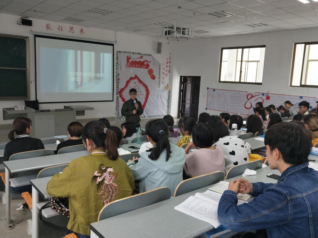 【公司党委副书记何江与2017级预防医学甲班】5月29日,何江在2017级预防医学甲班召开的“四六级,你准备好了吗?”的主题班会上,通过自己在员工时期学习英语的经历,强调同学们在学习英语的过程中要培养学习的兴趣,更要重视持之以恒的积累和运用。