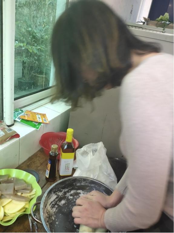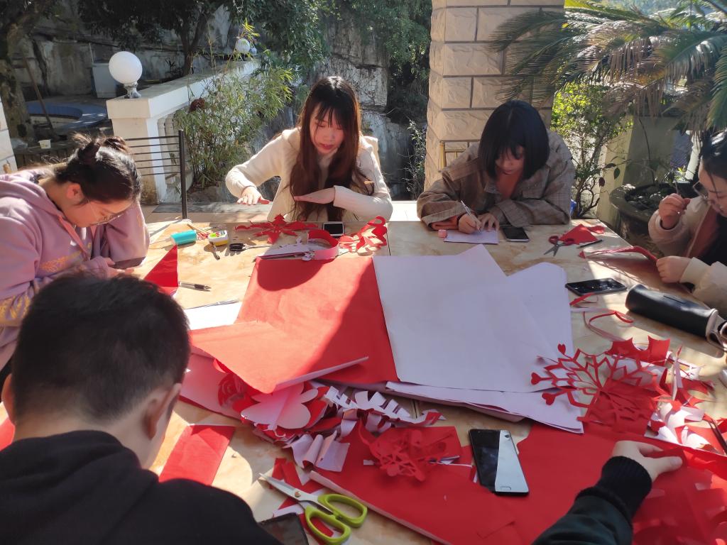 布置好场地后,围绕着本次活动的主题展开了一系列的活动,有剪纸、传唱革命歌曲、下象棋和包饺子。