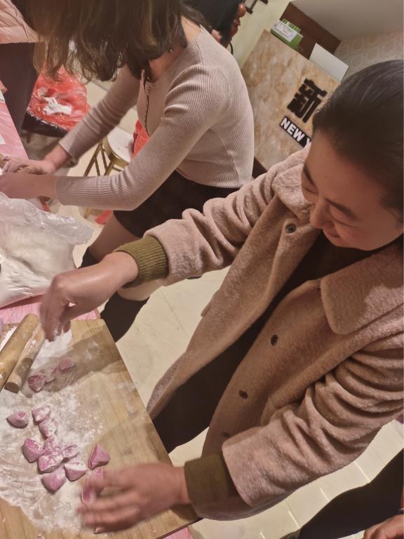 最后,包饺子活动隆重登场。饺子寓意吉祥,是深受中华人民喜爱的传统特色食品,民间更是有“好吃不过饺子”的俗语。大家自己调馅、和面、擀饺子皮,虽然大多数同学是第一次接触擀饺子皮,但依旧无法阻挡他们敢于尝试的热情。在欢声笑语中,大家相互讨论,不断的学习擀皮和包饺子。看着自己的劳动成果,大家的脸上洋溢着兴奋与自豪。品尝着热腾腾的饺子,大家的心里别提有多高兴了。