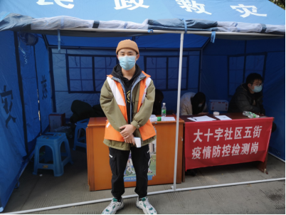 (董光镨同学在榕江县大十字社区负责过往人员体温检测)