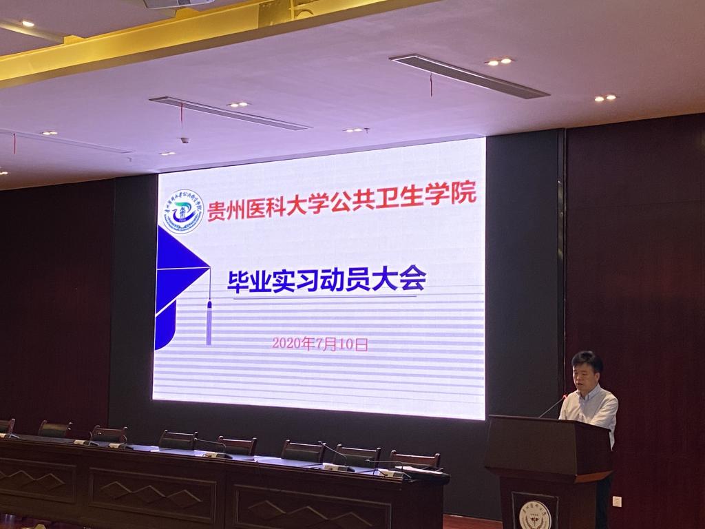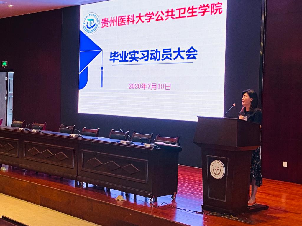 杨光红作总结讲话,强调毕业实习是公共卫生与预防医学专业人才培养过程中十分重要的环节,是从公卫学子向公共卫生行业工作者、实践者转变的重要时期。希望同学们要以严肃认真的科学态度、正确的思维态度和踏实肯干的工作作风积极努力的投入到毕业实习,按时保质保量完成综述、开题和毕业论文;同时要求每一位同学在毕业实习期间一定要高度重视和加强自身的人身和财产安全防范,严格遵守学校和实习单位的安全管理规定,严格执行考勤纪律、请假制度、打卡制度、报告制度;实习期间,每一位同学要学会合理安排学习和工作时间,同学之间要互相帮助,遇到困难和情绪等问题时,要第一时间与辅导员和指导老师联系沟通交流、妥善处理,确保每一位同学以良好的身心状态顺利完成毕业实习任务。