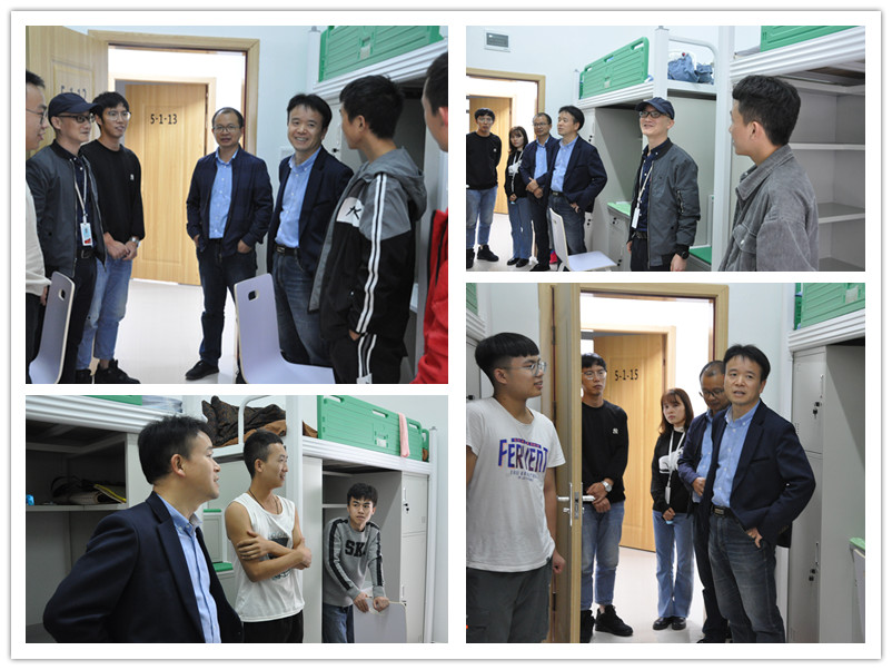 随后,洪峰一行到员工宿舍看望新生,并与新生亲切交谈,希望同学们能尽快融入大学校园,开启美好的大学时光,通过自己的不懈努力,成为一名德智体美劳全面发展的优秀公卫学子。