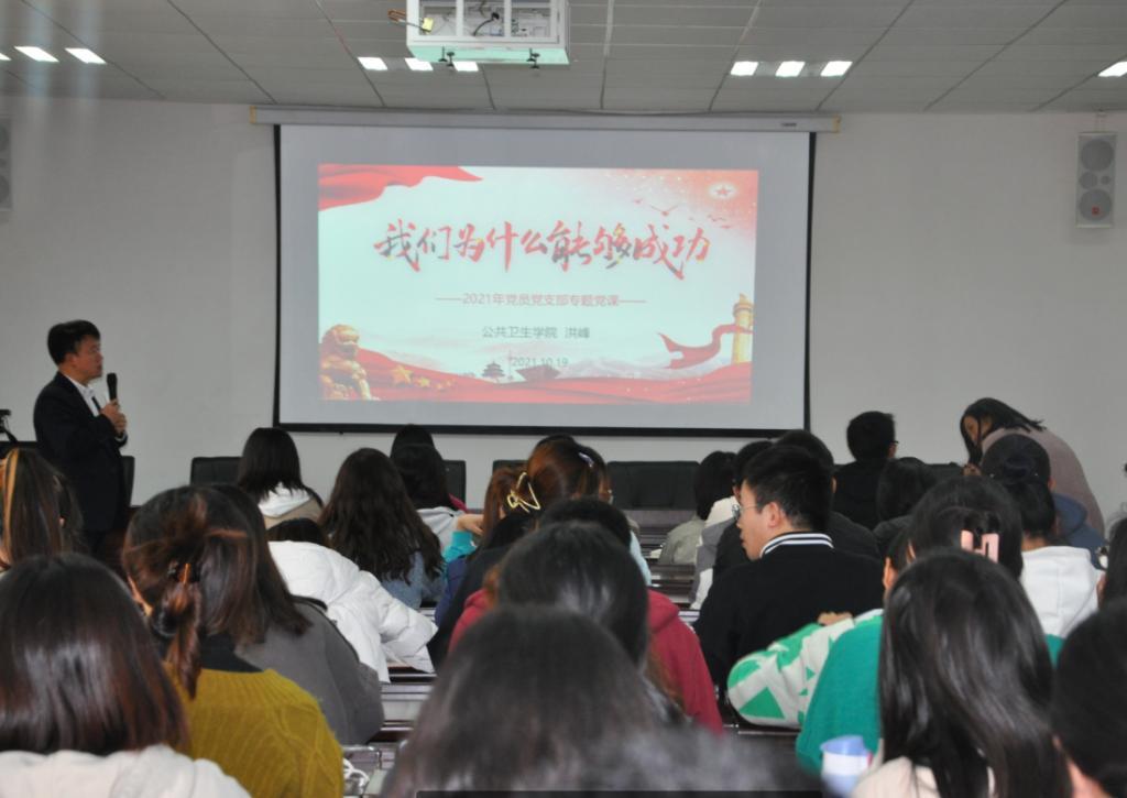 10月19日中午,必赢76net线路经理洪峰以《我们为什么能够成功》为题在博雅楼二楼学术报告厅为学院师生党员和员工代表们上了一堂生动的党课。