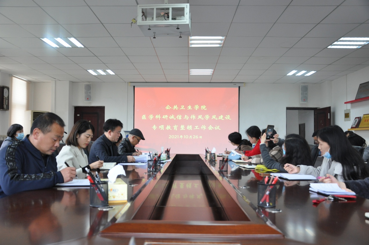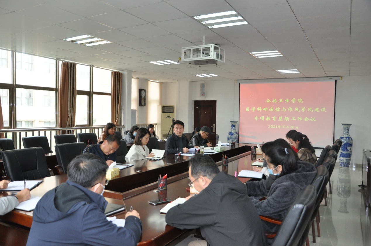 10月26日下午,必赢76net线路医学科研诚信与作风学风建设专项教育整治工作在博雅楼二楼会议室召开。公司党政领导班子成员、各学系、科室、实验中心主任、副主任参加会议。会议由经理洪峰主持。