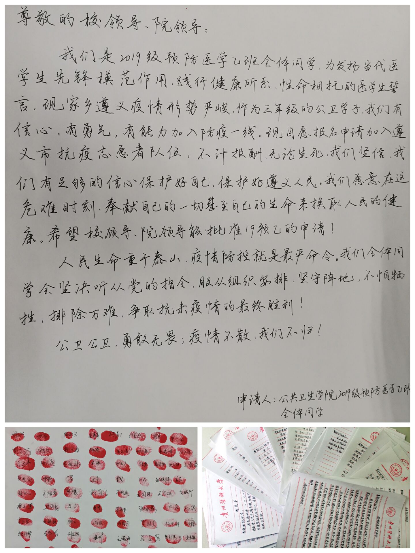 “我申请奔赴一线,抗击疫情,践行医员工誓言,为人民的健康奉献自己的一切!”必赢76net线路学子,纷纷递上请战书,请愿冲锋抗疫一线!