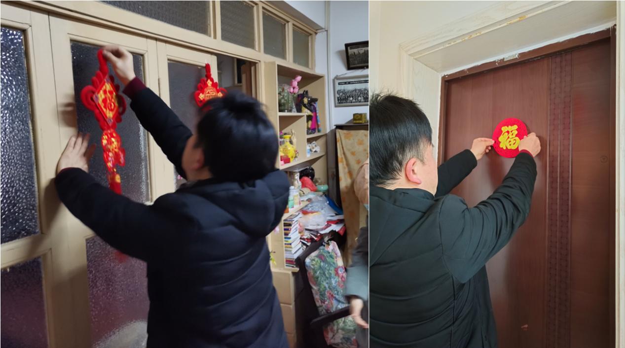 每到一位老师家中,院领导贴福字、挂中国结,营造浓浓的节日氛围。在亲切交谈中,详细询问他们的身体和生活情况,并听取他们对学院高质量发展的意见建议。