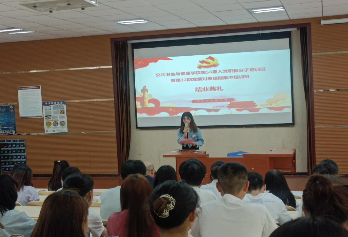 2021级预防医学1班张月艳同学作为积极分子学员代表发言,2020级卫生检验与检疫王恬同学作为发展对象学员代表发言,她们分享了参加此次培训的所学所得和感悟。纷纷表示,通过此次培训,对中国共产党有了更全面更深入的认识,党性意识得以锤炼、思想得到了升华,行动上得到了促进。在今后的学习、工作和生活中,将严格按照党员的标准要求自己,自觉加强党性修养和锻炼,争取早日成为一名光荣的共产党员,为国家和人民贡献青春力量。